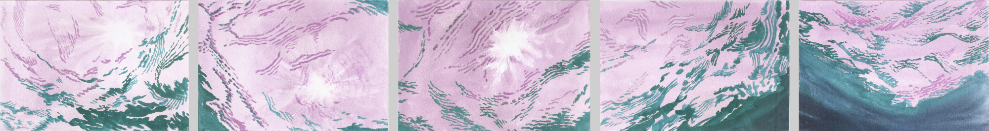 Pentaptychon ‘sott’aqua‘, 2025 Aquarell auf Fabriano 300g, je 12,5 x 18 cm | |