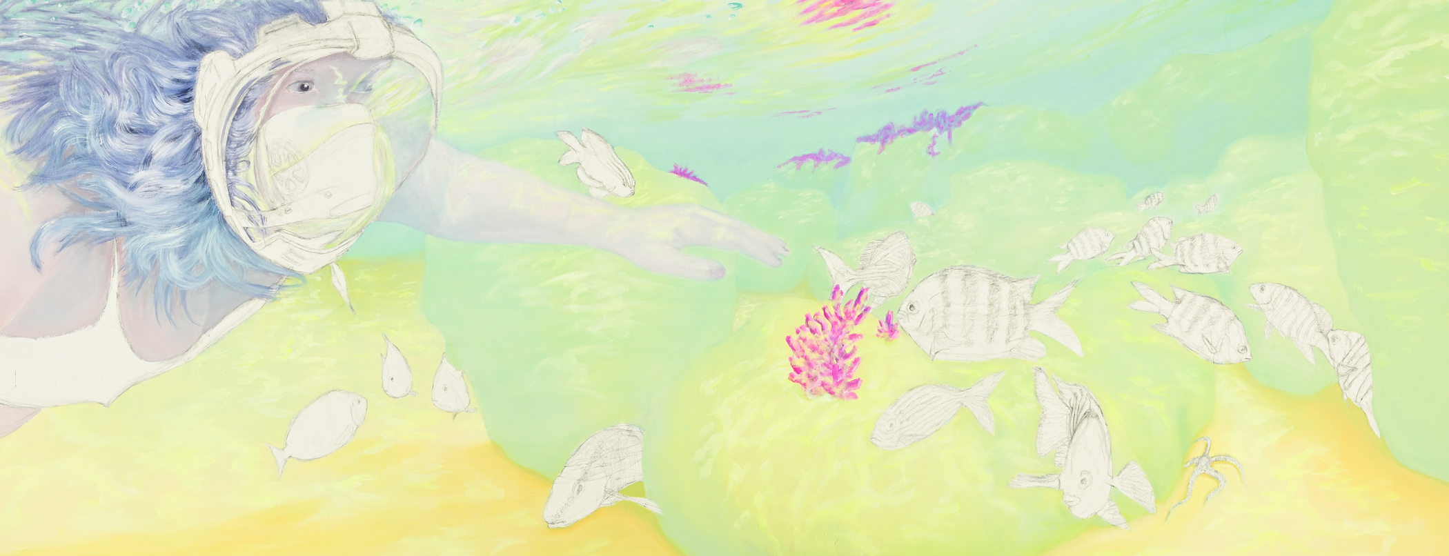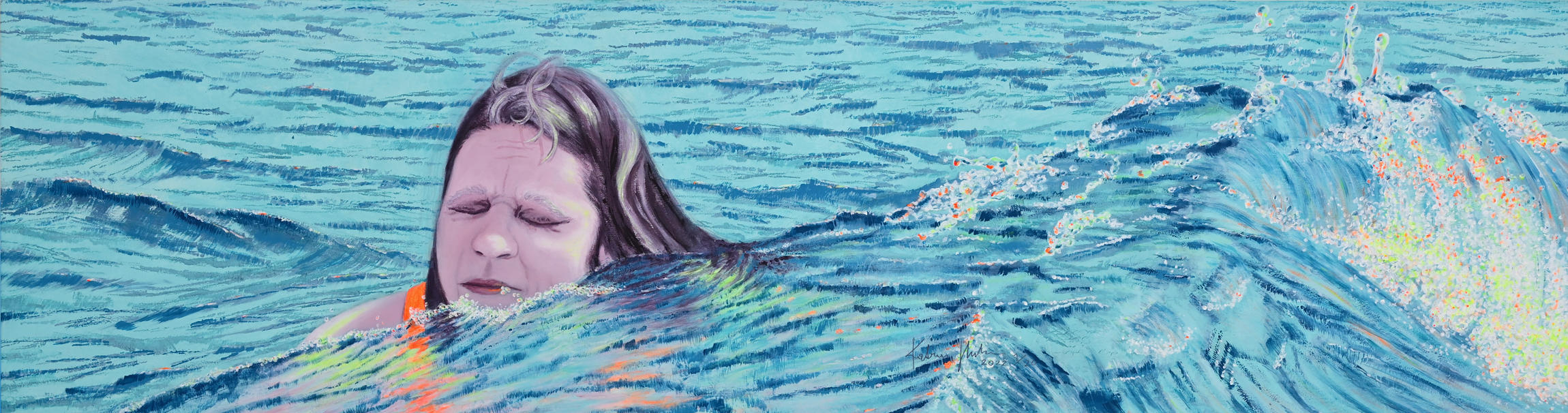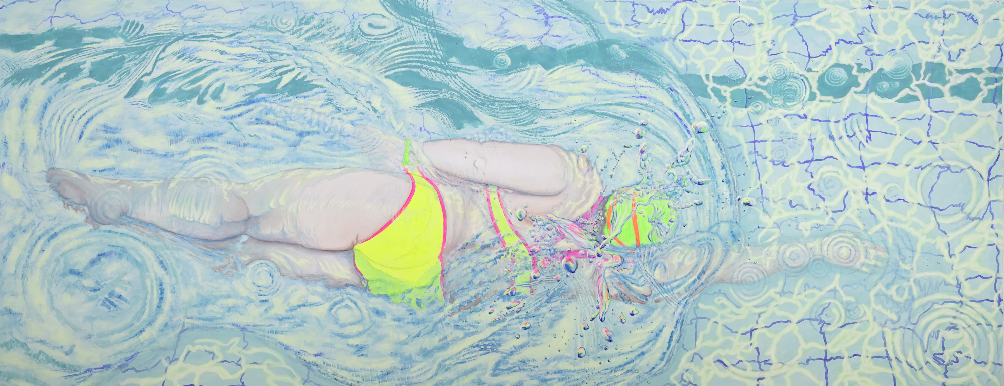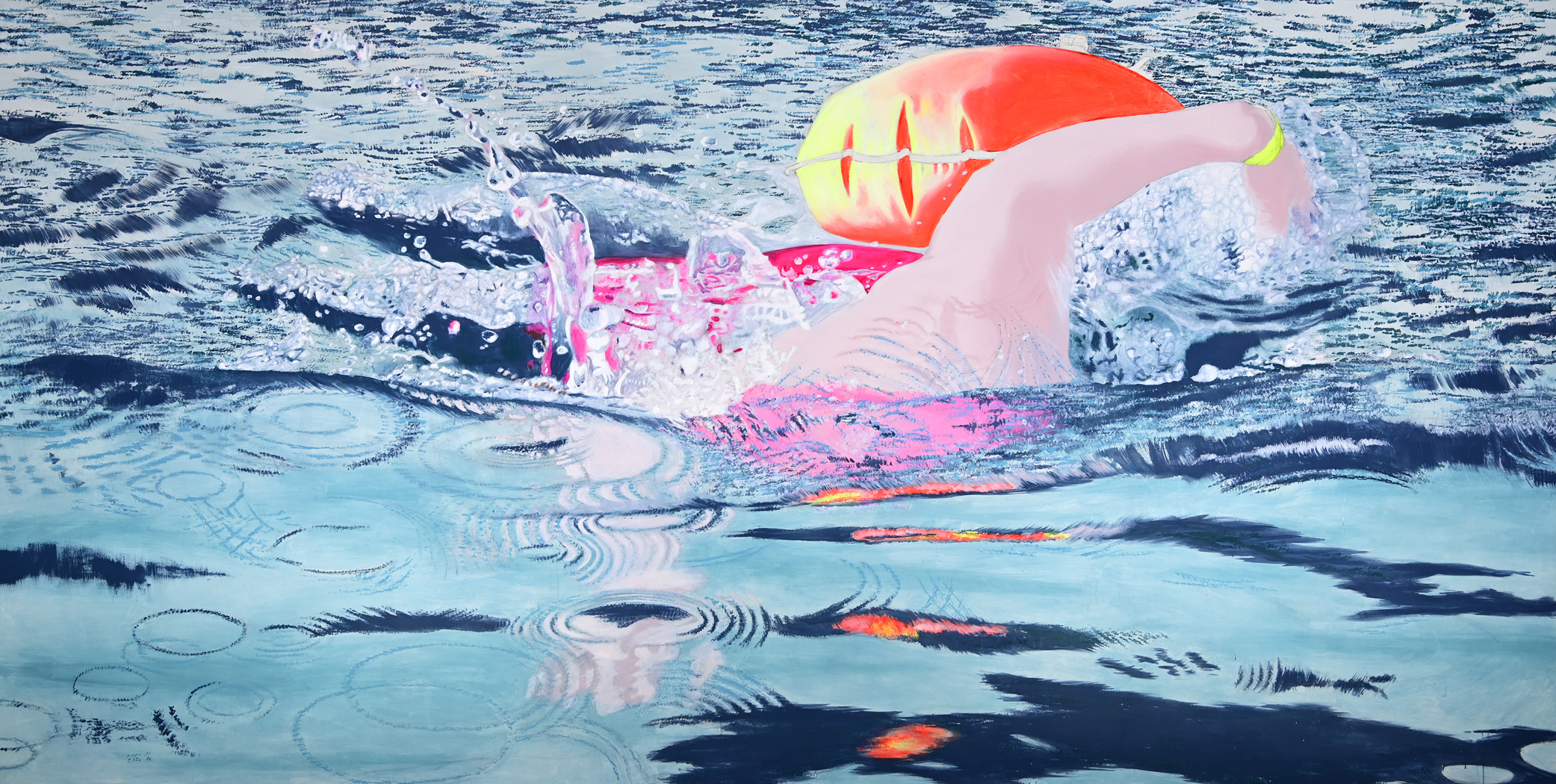 Die Freiwasserschwimmerin Teil2, 2019200 x 410 cm, Acryl auf Baumwolle |