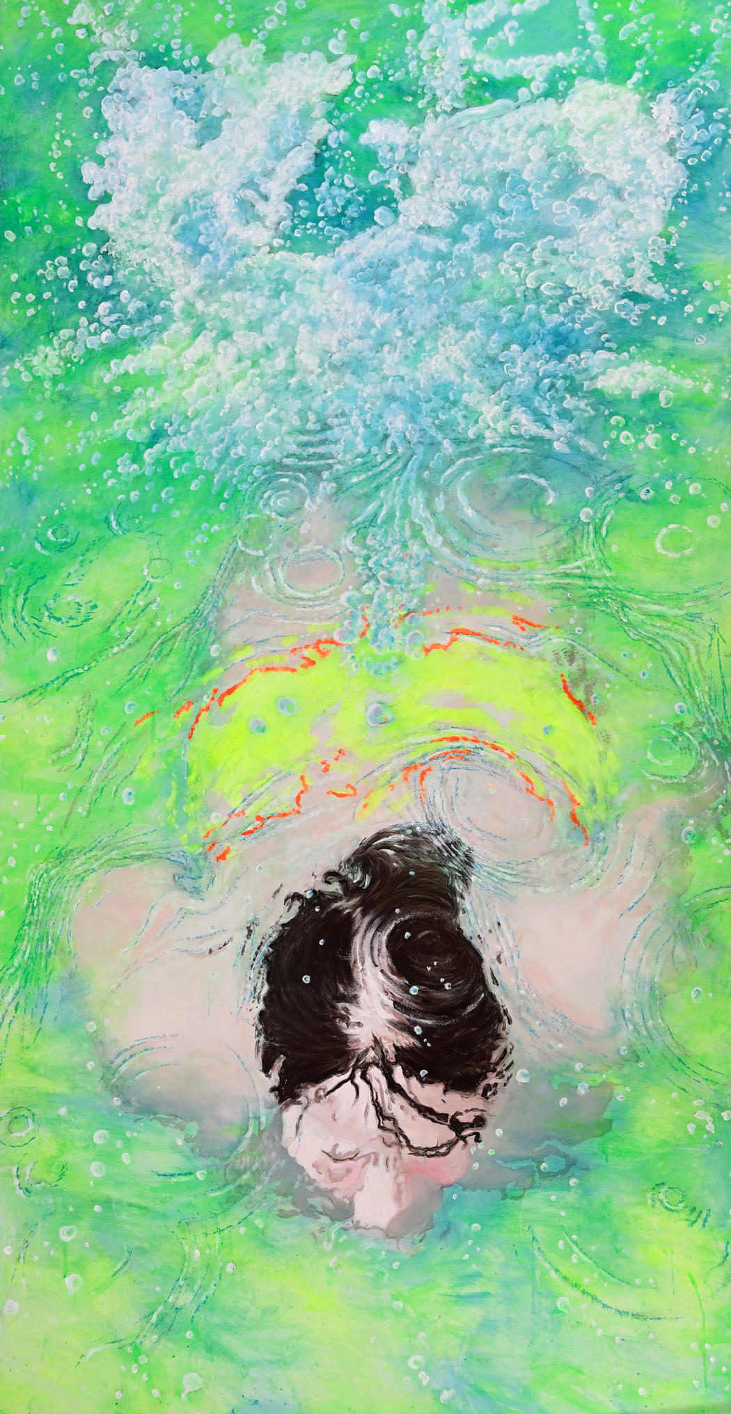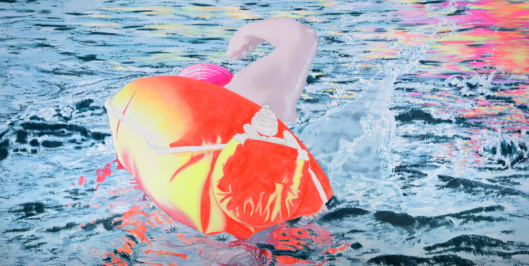 Die Schwimmerin Teil2, 2017-2018200x380 cm, Acryl auf Baumwolle Foto: Herman Seidl |